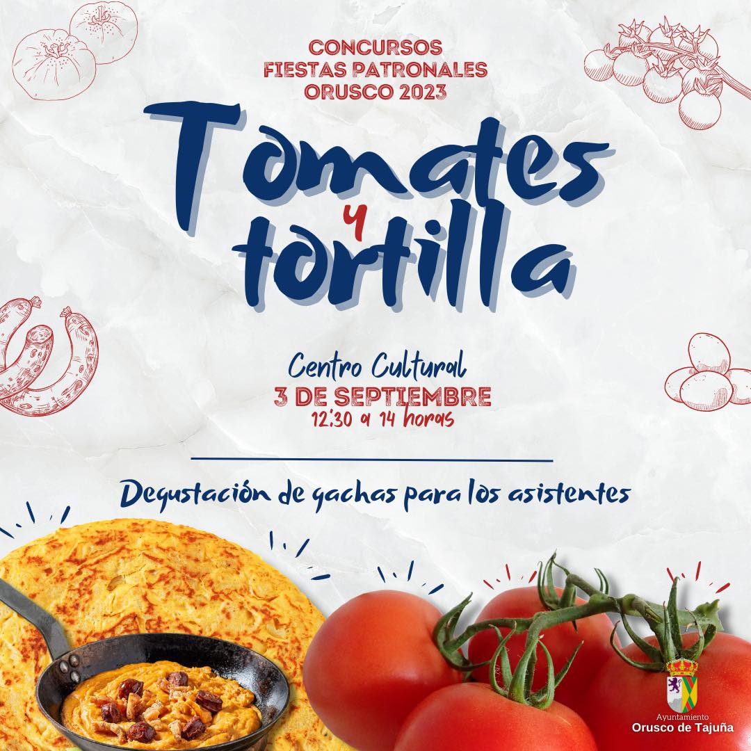 ¡Vuelve el concurso más orusqueño de las Fiestas! Prepara tus mejores tomates porque, el próximo 3 de septiembre, vamos a elegir el mejor tomate 100% orusqueño. Y si lo tuyo son las tortillas de patata, también esperamos tu preparación. Además. habrá degustación de gachas para todos ¡Os esperamos!